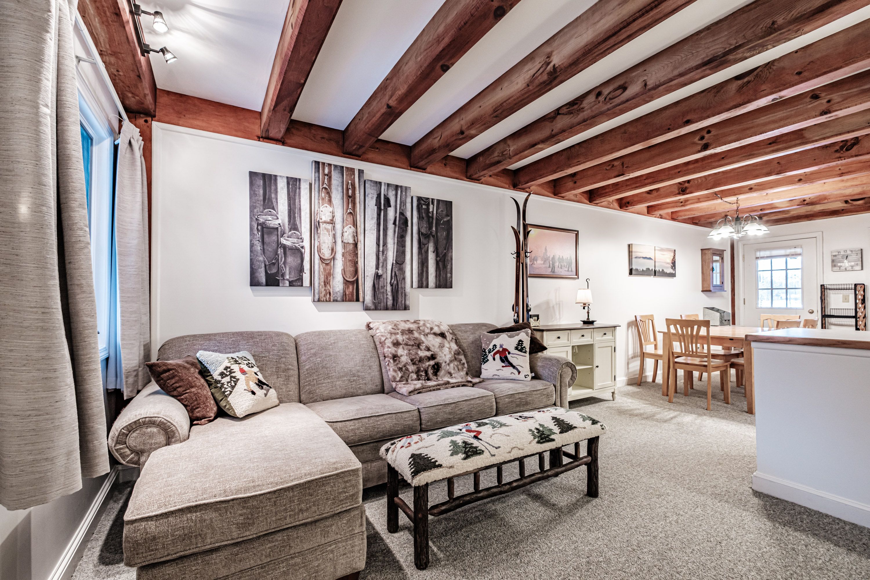 Inside, find an inviting post-and-beam design with 1 bedroom, 1 full bath, and approx. 620 sq ft of thoughtful living space all on one floor — ideal for easy access, comfortable living, or vacation use. The fully furnished interior (included in the sale) makes this condo truly turnkey, whether you’re planning for your next ski season, summer adventures, or year-round living.