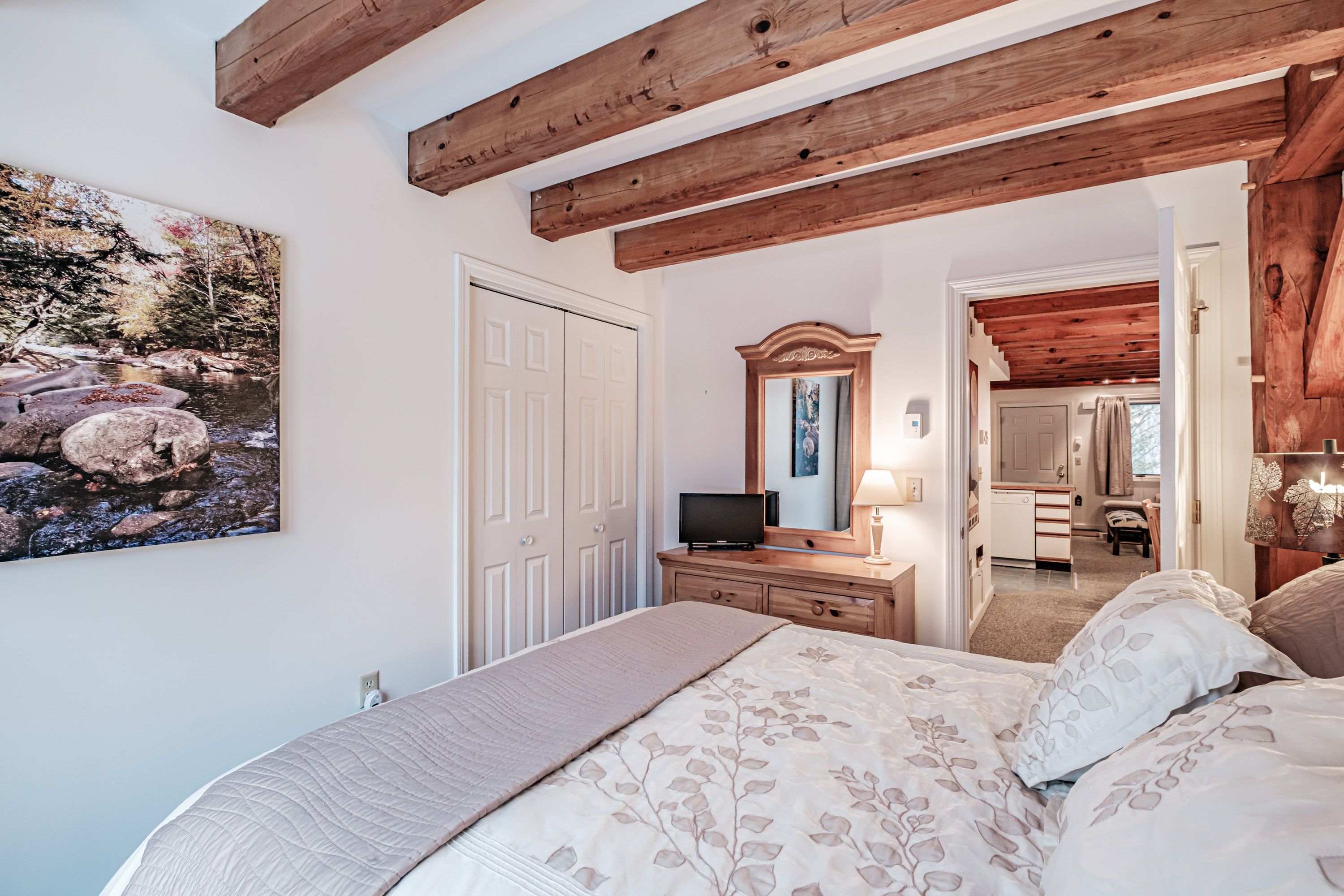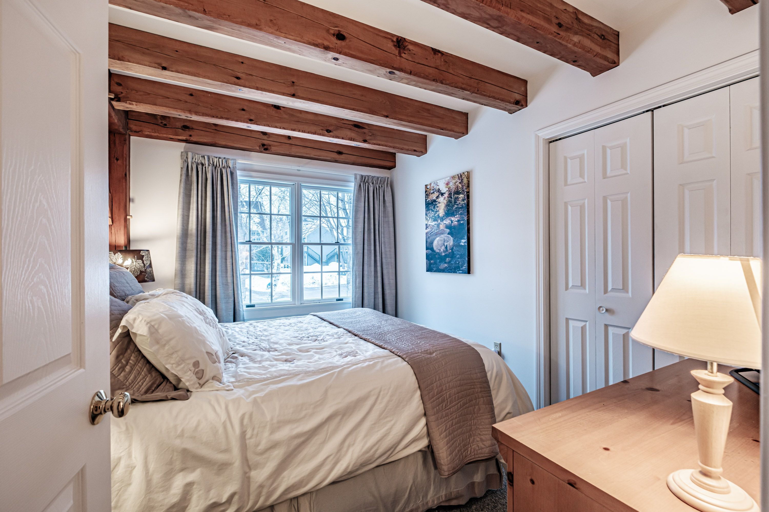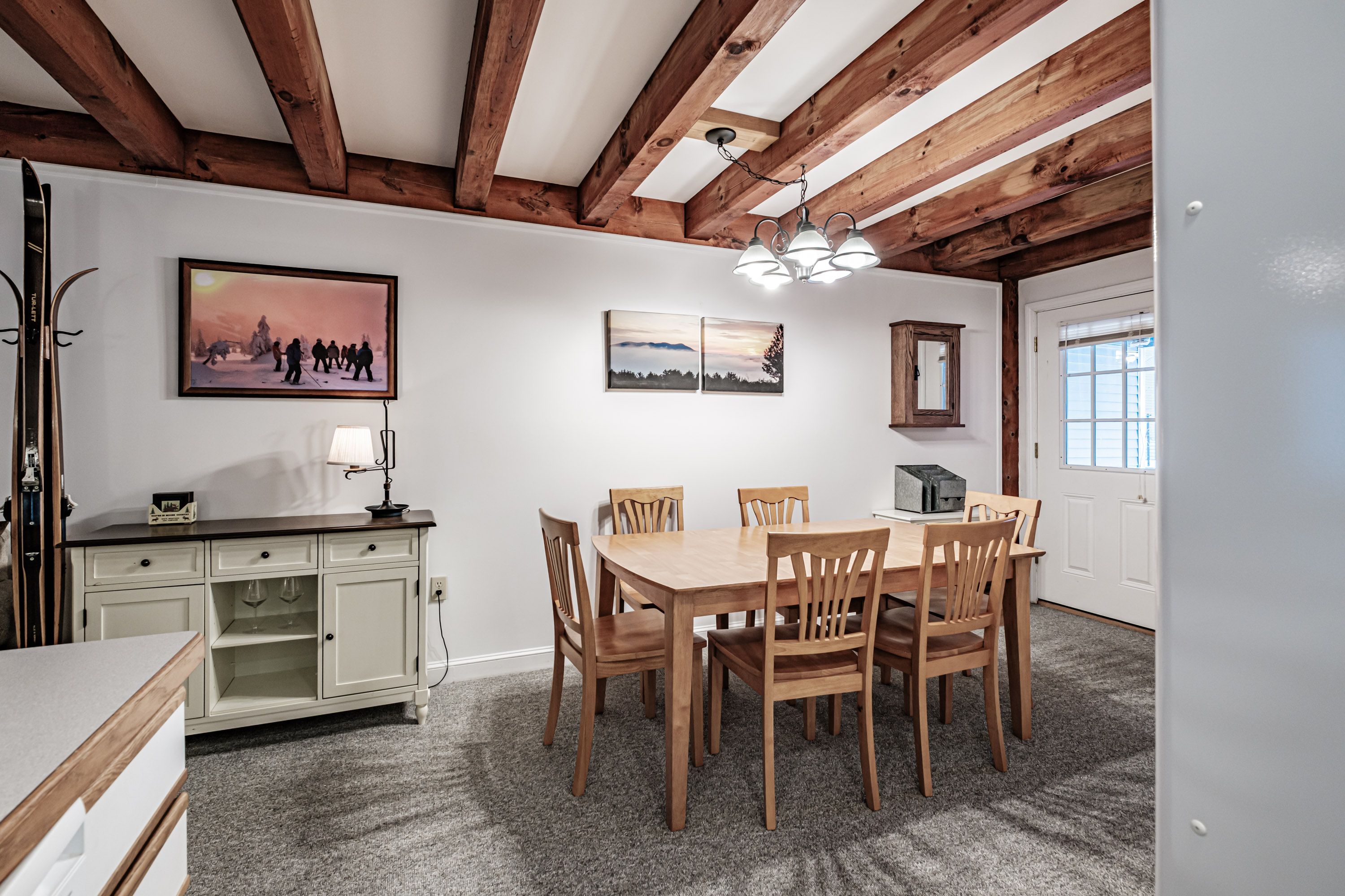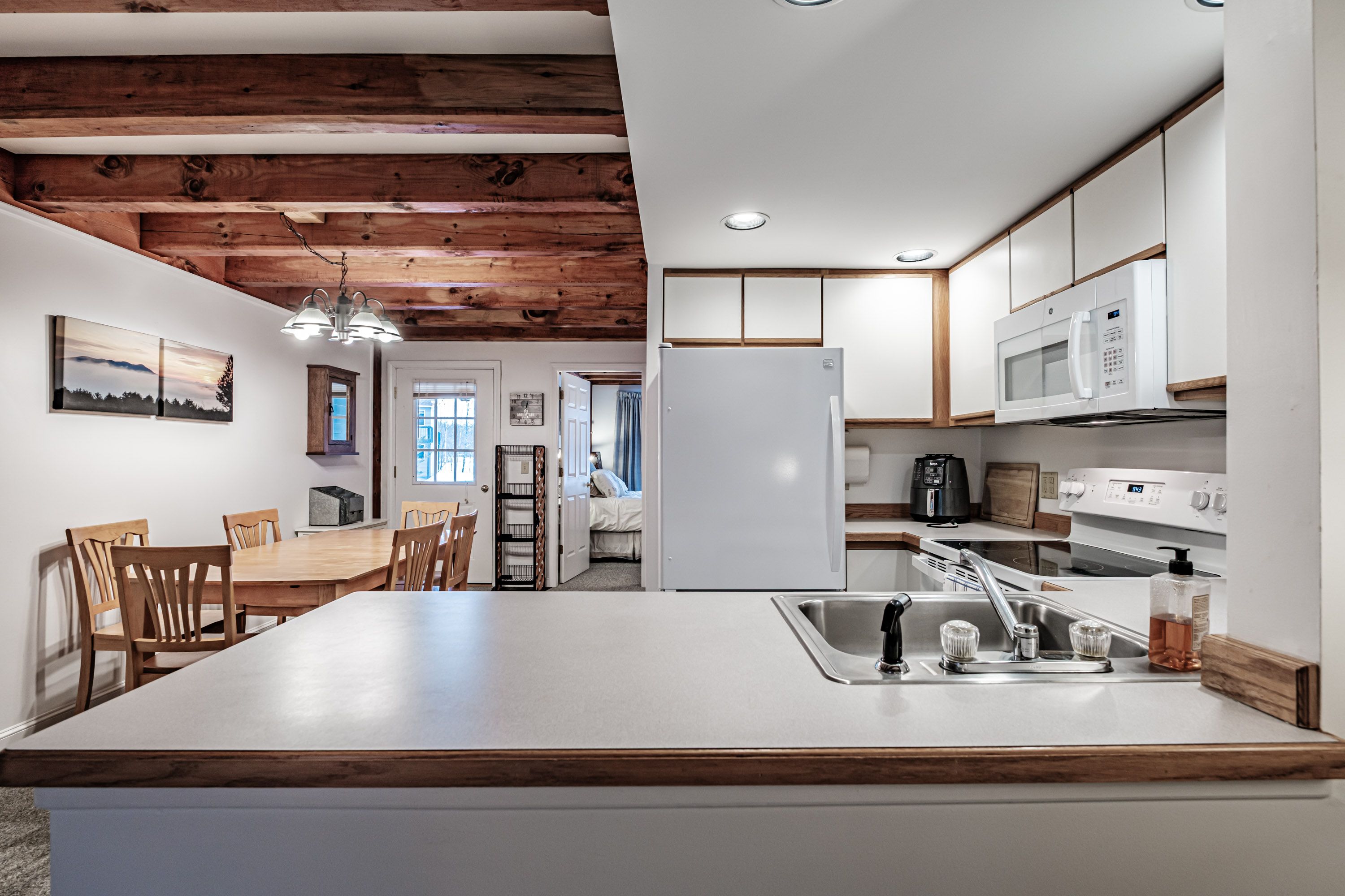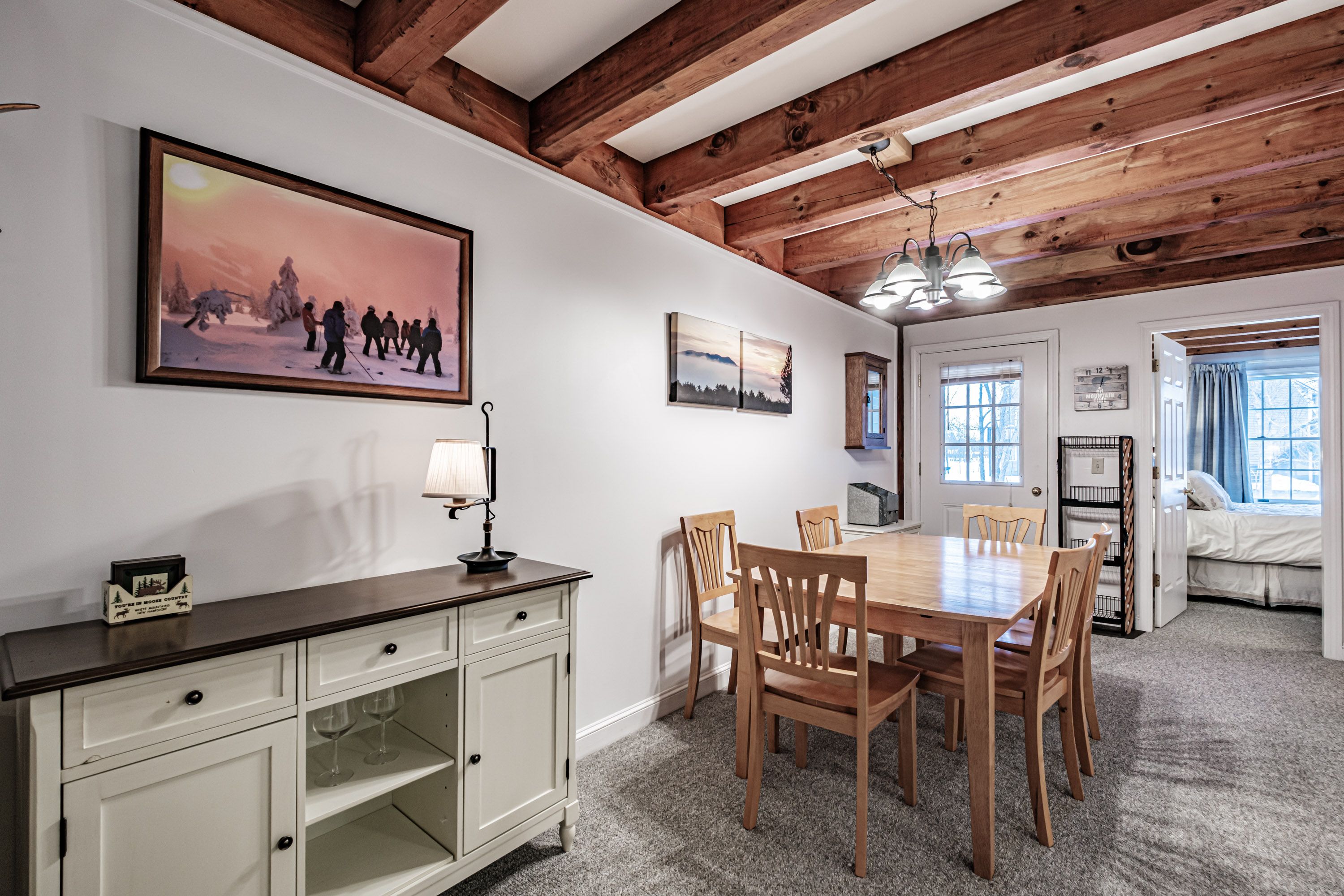 Enjoy a private back deck just off the living area — perfect for morning coffee or evening relaxation — and ample storage for gear. Riverbend’s location just minutes to Sunday River’s slopes, non-stop outdoor recreation, and Bethel’s dining and entertainment scene means weekends are effortless and memorable.